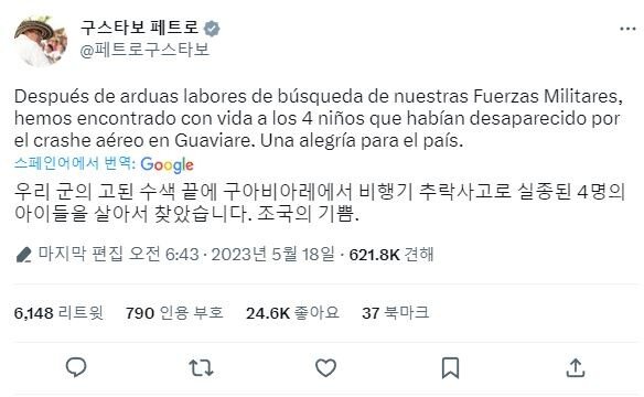 Colombian President Gustavo Petro posted a post on Twitter that day, saying, “After a hard search by our military, we have found four missing children,” adding, “It is the joy of the whole country.”